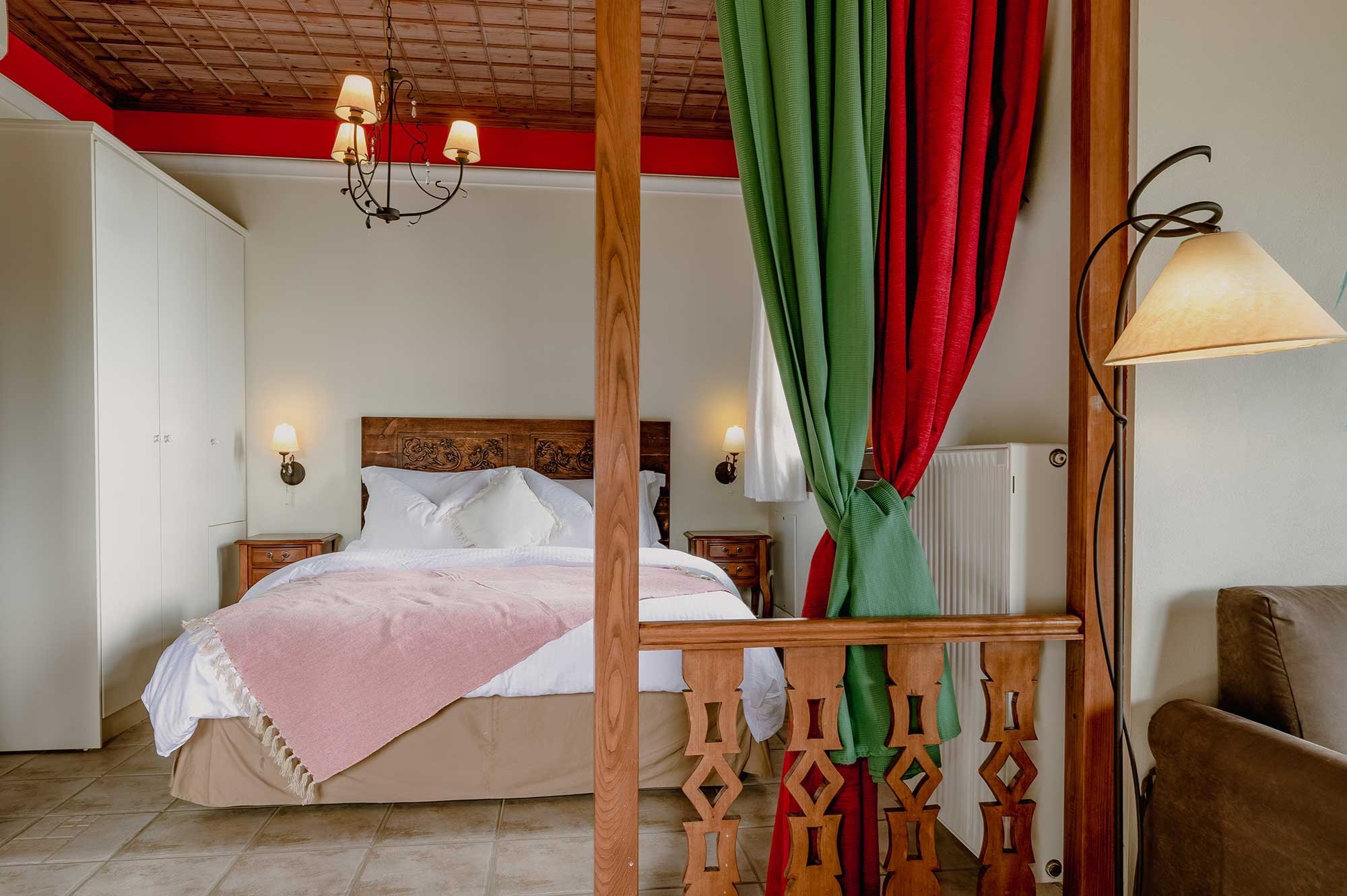 Η αυτόνομη πολυτελής κατοικία ‘’Ζουμπούλια’’ βρίσκεται στο δεύτερο επίπεδο. Διαθέτει συνολική εσωτερική επιφάνεια 45m2 και αποτελείται από έναν ενιαίο χώρο κουζίνας, σαλονιού και κρεβατοκάμαρας. Η μέγιστη χωρητικότητα του διαμερίσματος είναι τέσσερα άτομα καθότι πέρα από το διπλό κρεβάτι διαθέτει καναπέ ο οποίος ανοίγει και διαμορφώνεται σε δυο μονά άνετα κρεβάτια. Η κουζίνα είναι πλήρως εξοπλισμένη και παρέχει όλα τα απαραίτητα μαγειρικά και ηλεκτρικά σκεύη. Στο διαμέρισμα κυριαρχούν πράσινες και κόκκινες αποχρώσεις. Κύριο χαρακτηριστικό της κατοικίας αποτελούν τα καλαίσθητα ξύλινα κάγκελα (οντάδες) που έχουν τοποθετηθεί στην κρεβατοκάμαρα, η σκαλιστή ζωγραφιά στο ξύλινο κεφαλάρι με λουλούδια της περιοχής, το ξύλινο ταβάνι ζωγραφισμένο στο χέρι, καθώς και το τζάκι με την χειροποίητη κεραμική ποδιά. Τέλος, η κατοικία διαθέτει ιδιωτικό ευρύχωρο μπαλκόνι με υπέροχη πανοραμική θέα στον Παγασητικό κόλπο και στο ειδυλλιακό ηλιοβασίλεμα.